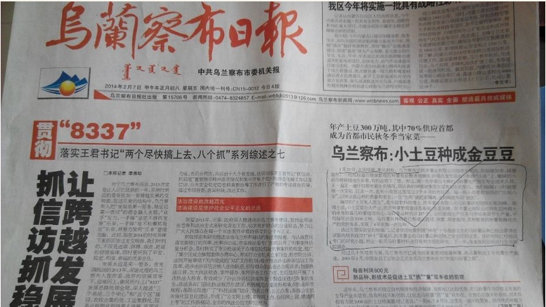 烏蘭察布日?qǐng)?bào) 小土豆種成金豆豆